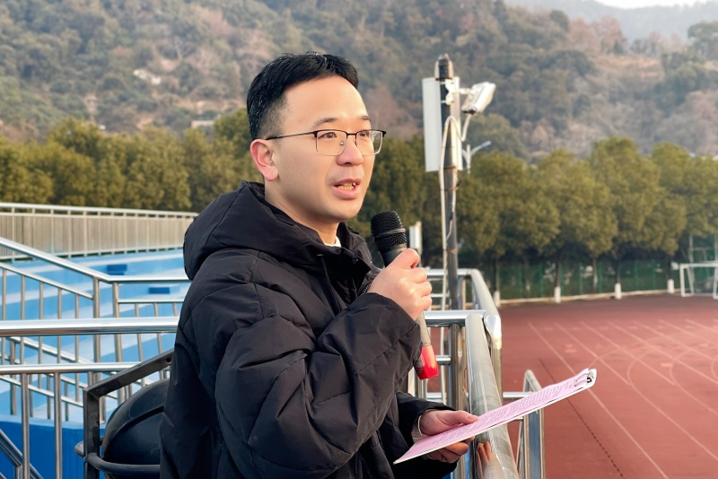 高中部提优部主任助理王勇老师以“定义与奇迹”为主题发表讲话。他分享了一句深刻的话:“人不是被定义的结果,而是拒绝被定义的奇迹。”王勇老师将这句话称为“刻在青春扉页上的箴言”。他以雄鹰搏击长空、蝴蝶破茧而出为喻,强调对机会的渴盼、对前路的求索、对梦想的追求是每个人的“天经地义”。“因为我们从来都不是游戏里的NPC,而是有血有肉的、有各自的梦想要追的大写的人。”这番话语如晨钟般唤醒学子们的自我意识与追梦勇气。