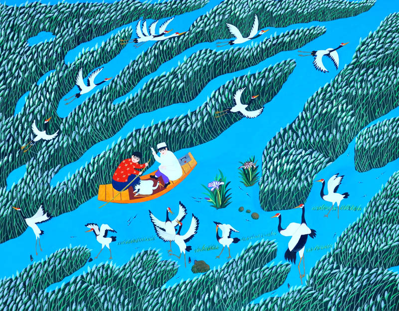 七彩绘四季,热情溢春秋。起步于上世纪八十年代末,在朱震国、潘宇两代人接力发起传承下,在两级政府与翔宇教育集团等公益扶持下,如今博里农民画队伍持续扩大,优秀作品层出不穷,渐渐步入更加开阔的发展坦途。