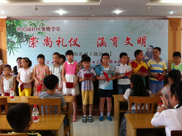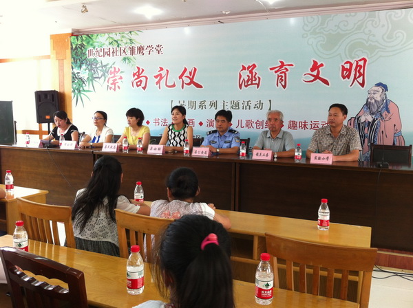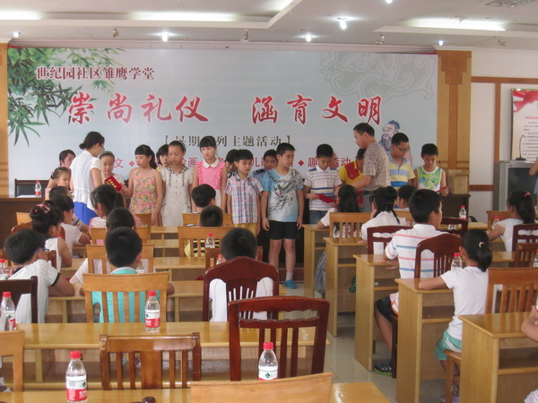 世纪园社区与县实验小学第四次联合举办暑期雏鹰学堂“崇尚礼仪,涵育文明”主题教育活动于7月31日圆满结束,并举行了隆重的闭幕式暨颁奖仪式。闭幕式上由县妇联、县公安局、镇关工委、世纪园社区、学校相关负责人和学生及家长代表出席。安宜镇关工委、世纪园社区领导、实验小学王校长分别作了讲话。