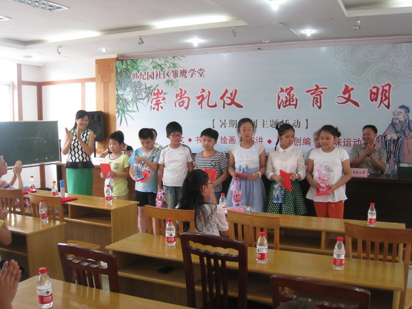 此次社区暑期活动教育性强,参与性强,深受同学们的喜爱和欢迎,活动中共评出一等奖10名;二等奖14名;三等奖21名;优秀奖18名。其中王涵璐同学获得书画比赛一等奖;朱宜婷同学获得儿歌创编一等奖;宁锐同学获得演讲比赛一等奖;丁天同学获得主题征文比赛一等奖。(文图:祁华忠)
