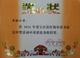 时间:2015-01-20 13:30:11 浏览:1170在刚刚结束的2014年度,宝应县、扬州市和江苏省红领巾征文、演讲比赛中,宝应实小喜获丰收,有多人分获不同级别、不同类别的奖项和奖次。赵炫雅、潘伯玮、戚浩文三名同学荣获宝应县红领巾征文一等奖,同时还分别荣获扬州市红领巾征文二、三等奖;周昊扬、陆...