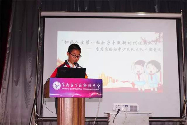 2019年11月8日中午,宝应实中2019级少先队大队干部竞选活动在西校区校友会堂举行。初一年级24位候选人及各中队队员代表们早早地来到现场,德育处副主任、校团委负责人李娜老师,团委副书记姜露老师参加会议,大队辅导员陈新老师担任主持人。