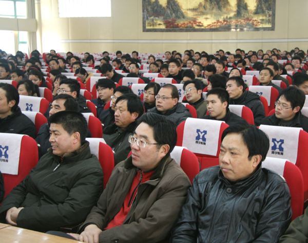 会议在欢快祥和的《春节序曲》中拉开帷幕,宝中音乐教师张春艳首先带领大家进入名曲欣赏环节。“课堂、荣誉、访问、提升、突破、关心、名师、规范”是2009年宝中的八大关键词,校办成用军副主任详细解读了宝中八大关键词的具体内涵,宣读了去年各级各类赛课、论文获奖教师名单。宗兆宏副校长围绕江苏教育新政下的规范办学主题,提出宝中的新学期目标,要求全体教师牢固树立规范意识,在严格执行“五严规范”前提下从事教育教学工作,明确规范学生在校集中学习时间、教室布置、课程开设、课堂教学、教学资料、实验室使用、学生社会实践活动和综合素质评价等,进一步提高管理要求,以便能够更加规范地提高教学质量。