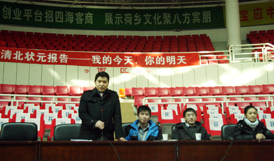 活动伊始,在学校体育馆举行的“我的今天,你的明天”报告会上,来自北京大学、清华大学的优秀学子——王也、李虓等博士生,先后以独到的视角、生动的事例、幽默的语言和同学们交流成长经历,分享成功经验,畅谈成功之道。