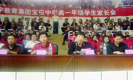 集中会议收尾阶段,校长助理潘中耀代表王玉芬董事长、卢志文总校长,向参加会议的家长们表示了衷心感谢。回顾06年高考成绩,结合08年高考改革方向,潘中耀校长助理从总体上向家长们汇报了学校在新高考方案出台之后的思考与应对策略,他满怀信心地说道:“面对高考新变化,我们宝中有信心、有方法来积极应对这一切,因为我们有一支团结智慧的教师队伍,有负责任、高素质的家长,有胸怀大志、脚踏实地、勤奋刻苦的学生。”潘校长强调,教师、家长、学生现在开始就要同心协力一起为三年后的高考目标努力奋斗,要对未来的成功充满信心。