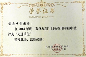 省宝中团委获评“县‘双优双创’目标管理先进单位”