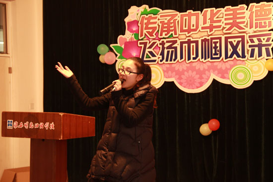 表彰大会首先由工会主席马德超宣读表彰决定,汤日华等17位同志被表彰为第五届“曙光巾帼建功标兵”,并同步播放她们在平凡工作岗位上默默奉献的音像视频。她们敬业、幸福的形象和质朴、温暖的话语,展现了曙光人的精彩。接下来是特殊的颁奖仪式。大会安排了“曙光之骄”、“智慧学生”、“优秀学生干部”、“诚信美德少年”获得者以及“优秀班集体”的班长等17位优秀学生作为颁奖嘉宾。他们用稚嫩的童音宣读颁奖词,怀着崇敬的心情颁发荣誉证书。接着,“标兵”代表程镜伊老师的一曲《风雨彩虹,铿锵玫瑰》和“曙光十佳歌手”代表肖冰老师的一首《你好吗》将活动推向了高潮。获奖代表刘洪、徐丽两位老师激情洋溢的获奖感言,道出了她们在曙光工作的幸福、肩上的责任和今后努力的方向,更是代表了曙光女职工的心声。