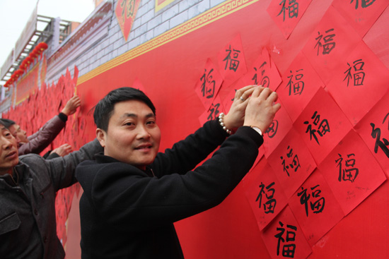 更让人眼前一亮的是教学楼前的那面“万福墙”。墙的正上方赫然写着“曙光有你就是福”,墙边摆放一排桌子,桌子上备着笔墨纸砚,每位师生皆需执笔,在方正的红纸上写上“福”字,然后张贴于“万福墙”上。“万福墙”寓意“不忘初心,万福自集”,“福"字是写出来的,"福"缘是爱出来的,“福”事是干出来的!