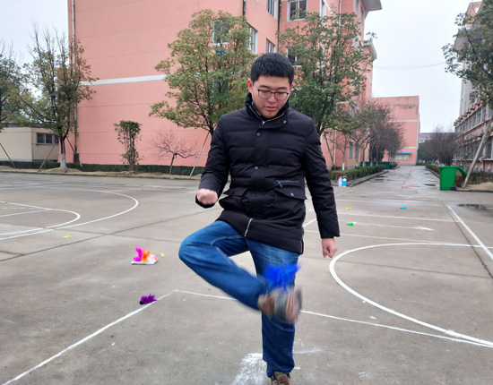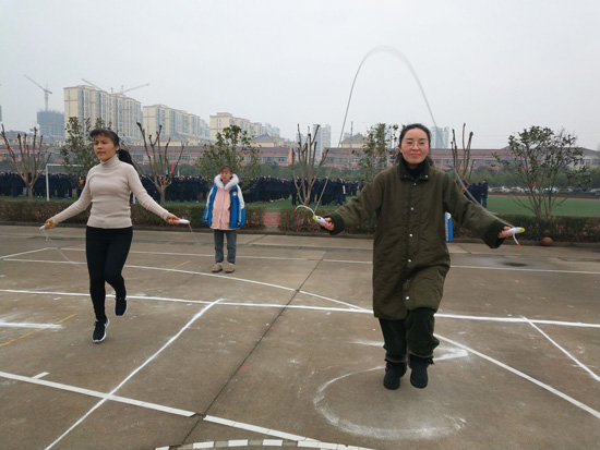 元月7日上午7:43分,早读课刚下,体育中心主任陈晓虎便热情的在全体教师群里邀请大家去篮球场上参加比赛,陈主任将一些比赛事宜及注意事项提前发至群里,供大家参考。紧接着便是老师们陆陆续续的前往参赛。老师们有的投篮,有的踢毽子,有的跳绳,动起来后便不亦乐乎。尤其是跳绳的女老师们,更是使出浑身解数,首先把外套脱了,然后热身一会,一副成竹在胸的样子。校长助理李文婷更是在好几日前便提前准备,练习跳绳技术,果然,技压全场。踢毽子本应是女生擅长的项目,可我们的男老师们也一点都不逊色,瞧,他们无论是踢毽子的动作,还是踢的个数,都是那么的厉害,让一些女老师都叹为观止。