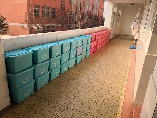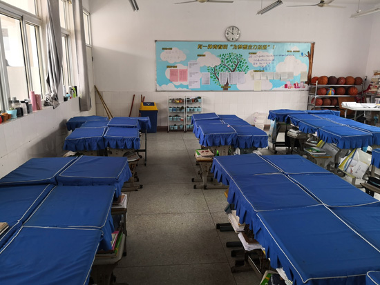 11:40,全体班主任到位,花茂齐副校长、张虎城主任、陈飞副主任各自带领一个年级的班主任,逐个班级参观物品摆放、班级卫生等班级文化布置。此时,教室里呈现的是学生放学后的原生态场景,也呈现出各班级学生不同的状态和习惯。有的班级桌椅整齐、桌面整洁、教室窗明几净,也有的班级桌面上随意摆放着最后一节课使用的书本、个别学生桌套污损。
