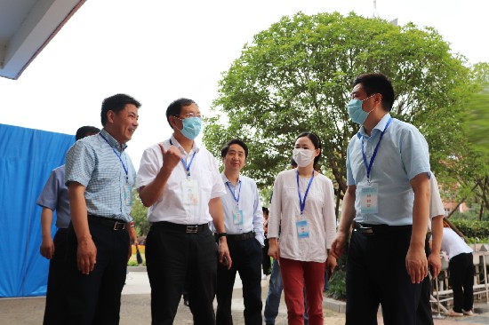 7月13日上午,淮安市教育局局长张元贵,副局长朱士东,淮安区区委常委、宣传部长刘震生,副区长彭凯等一行在区教体局局长房乃发、副局长高云海的陪同下走进淮安曙光双语学校巡视2020年淮安市中考曙光考点,巡视组一行高度评价曙光考点的各项工作,并亲切慰问辛勤工作的监考老师及考点工作人员。