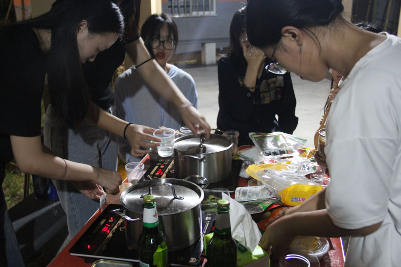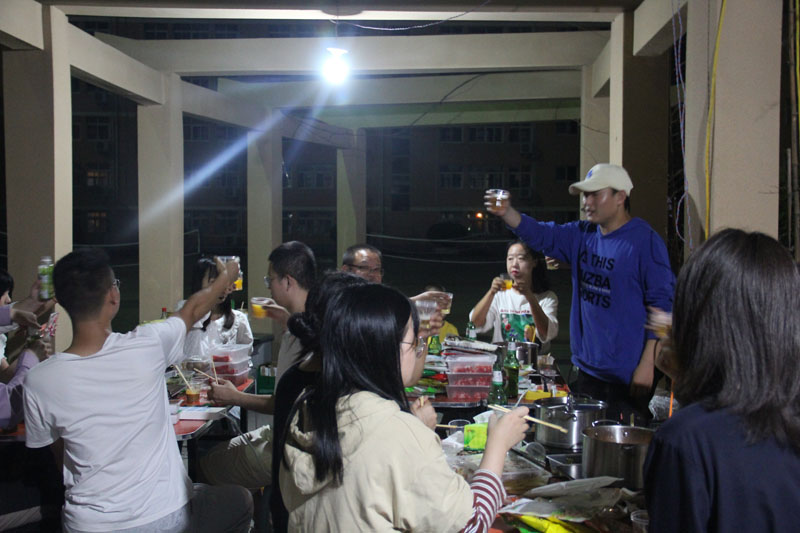 曙光校务会积极行动,多次召开碰头会,对相关情况进行摸底,拿出可行性方案,并对客籍新教师做好“就地过节”后勤服务保障。经曙光双语学校傅俊校长提议,21日中午,曙光的客籍新教师们齐聚曙光大酒店,进行了一场特别的“团圆饭”。由初中部校长助理孙亮亮代表曙光校务会成员,与客籍教师一同聚餐,向他们表达了节日的问候和学校的祝福。经调研,总校知道老师们想在学校吃上自助火锅,晚上,学校后勤立刻安排。操场篝火燃,火锅自助嗨。大家围坐一起,明月相伴,欢声笑语,其乐融融。