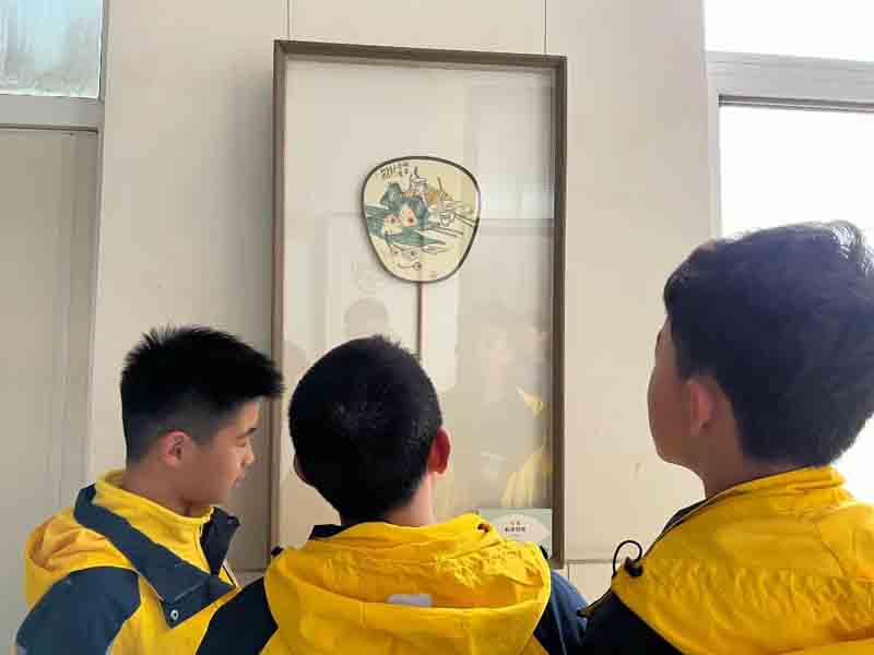 本次展览得到淮安曙光双语实验学校师生的热烈欢迎!初中部还创新了美术课堂样态,用探究扇面之美的美术活动整统教室授课和现场观展。同学们认真观赏,有的静默凝视、沉思感悟,有的低声交流、交换想法,有的现场临摹、研习技法,无不被书画家们精湛的技艺所折服。同学们纷纷表示非常喜欢移动书画展,能够直观而且沉浸式近距离地欣赏到名家书画感到惊喜,透过书画作品,还可以非常真切地感受到画家们的线条功夫和写意魅力。课间更是有自行组团前来观展的师生,驻足观赏之时,常常引发对作品技法和意蕴的热议,并产生“舞动丹青,挥毫泼墨”的冲动与遐思。开展一天来,陆续有初中部、小学部近千名师生参观了展览。