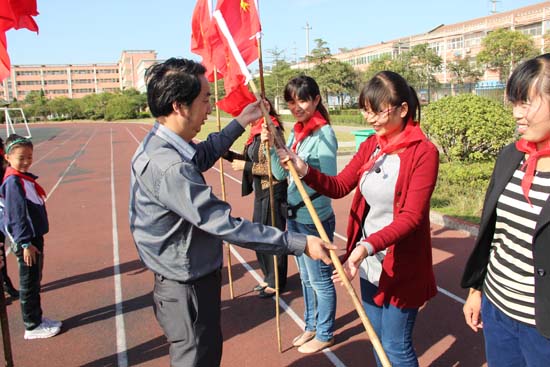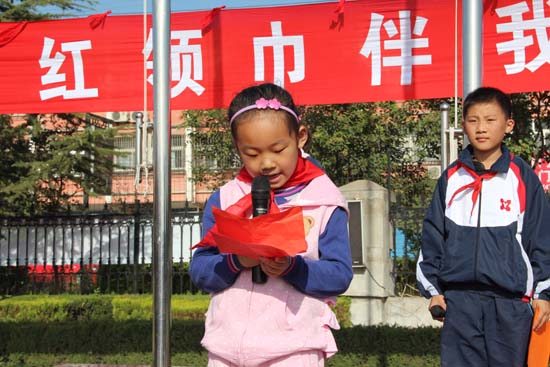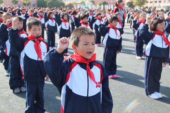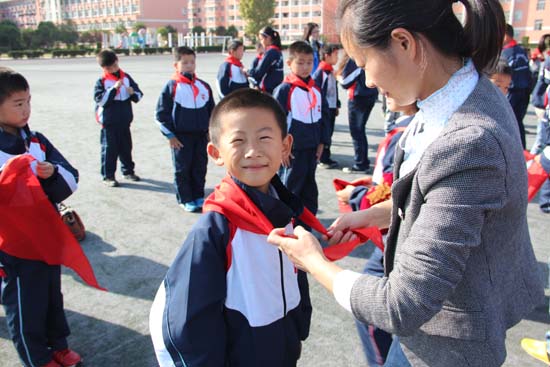 一年级级部主任陈荣老师对全体少先队员作了祝贺与动员。她说,作为周恩来总理家乡的少先队员,要继承和发扬周总理精神,以实际行动为队旗增光添彩,成为合格的社会主义事业的接班人,成为祖国建设的有用之才。(文/董静 图/卢翔)