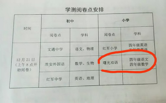 12月20日,淮安市教育局针对部分年级学生进行了学业水平测试。21日上午,淮安区四年级语文学科、数学学科阅卷工作在淮外曙光校区开展。