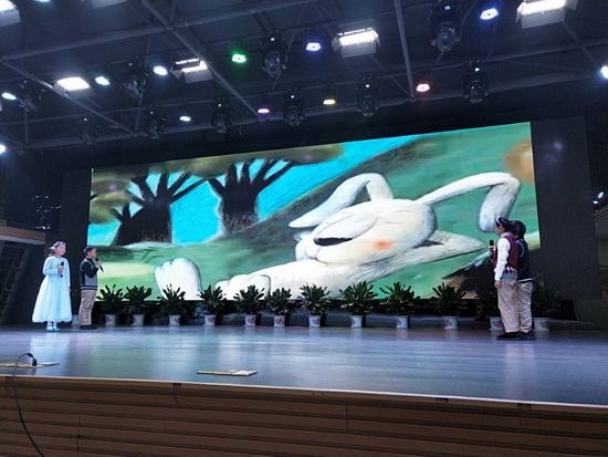 首先,41、42、43班带来的绘本配音:《A rabbit and a turtle》龟兔赛跑的老故事,由1、2、3班可爱的孩子们用流利的语音、动听的语调,为我们下面的观众带来了视觉、听觉上的新滋味。