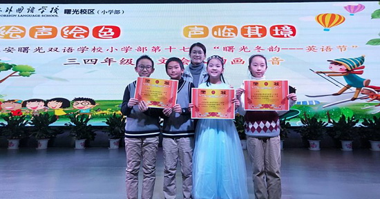 在同学们热烈的掌声中,曙光英语节的英文绘本动画配音大赛落下帷幕。(沙莎)