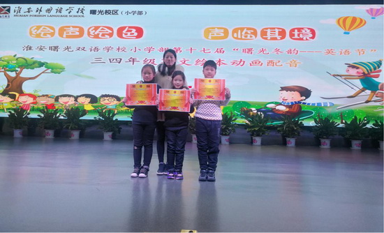 伴随着时光的年轮,今天我们又迎来了一年一度的英语节!12月26日上午10点,淮外曙光校区小学部四年级师生们迎来了主题为“绘声绘色,声临其境”----英文绘本动画配音大赛。