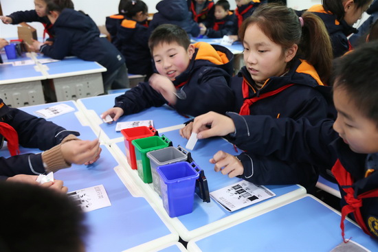 接着,区综合实践活动兼职教研员、曙光双语小学王玲玲老师执教了1节三年级《垃圾分类》现场课。课堂上,王老师紧紧围绕“垃圾分类”这一主题,通过册本阅读、现场分类、趣味游戏等方式,指导学生认识垃圾,了解垃圾的类别,分类的方法。整个课堂生动活泼、趣味盎然,学生在潜移默化中懂得了垃圾分类,拓展了知识,提高了技能,增强了环保意识。