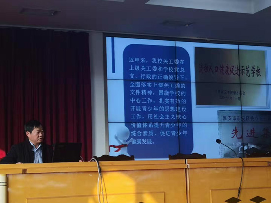 会议伊始,教体局党委委员、局关工委副主任武龙宝就本次考评会的注意事项作了具体要求;接着,淮安外国语学校、淮安曙光双语学校、楚州实验小学、文通中学等21所学校,结合本校开展关心下一代工作的实际情况,分别从“核心价值观教育”、“家长学校建设”、“常态化建设”、“关爱儿童”、“平时工作”、“ 自身建设”等方面进行文字汇报与图片展示。