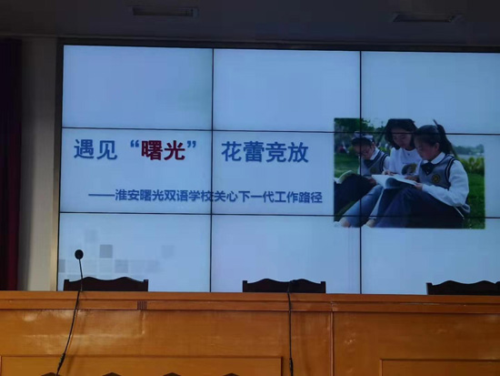学部杜凤飞副校长就“培养留守孩子阳光的性格,创新现有机制,开发多种教育资源,建设桐心园、“四格”教育馆、亲子悦读园、梦想小舞台等阵地,让学生在舒服自在、轻松愉悦的环境和氛围中,发现自我,展示自我,肯定自我”、“用心呵护,关注儿童心理健康。组建“知心姐姐”团队,创建了“心灵滋室”“静心苑”心理辅导室,并针对不同年级开展不同主题的心理健康课程。学校“知心团队”入选淮安市共青团创新创优项目”等方面进行了精彩汇报,博得了现场领导与兄弟学校的阵阵掌声。