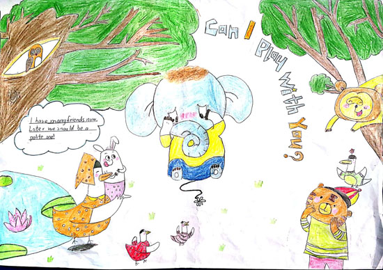 各班级同学认真选材,精心设计,绘画、编写、制作出了精美绘本作品。同学们制作出来的每幅作品内容充满想象力,图文结合,版面新颖、美观。通过参与续写绘本故事竞赛的过程,同学们享受了其中的乐趣,也懂得了如何去获得知识和运用知识。