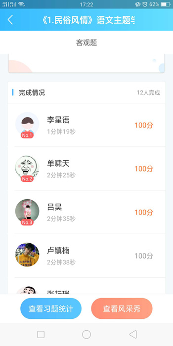作业布置:求质,求趣。首先,预习必须有效:熟读课文,解决生字词,了解作者相关知识,这几部分内容是可以让孩子们自己完成的,也是比较容易在线上反馈给老师的。这样可以最大限度地提高孩子们听课效果;其次,我们适当减少作业量;第三,我们提高了作业的趣味性。
