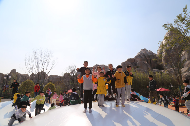 清晨,在孩子们一路欢声笑语中,我们来到了淮安当下最热门的旅游景点——西游乐园。一进门,孩子们就被各式各样的西游主题建筑所吸引。六年级的孩子们更是凑在一起研究这些建筑与小说中的是否一致。突然,孩子们的眼光被那直冲云霄的跳楼机所吸引,不一会儿,跳楼机下便排起了长长的队伍。再看那“天马行空”的旋转木马、蛛丝缠绕的盘丝洞、“大摇大摆”的海盗船、环绕盘旋的过山车……整个游乐园里充满了孩子们的尖叫声。