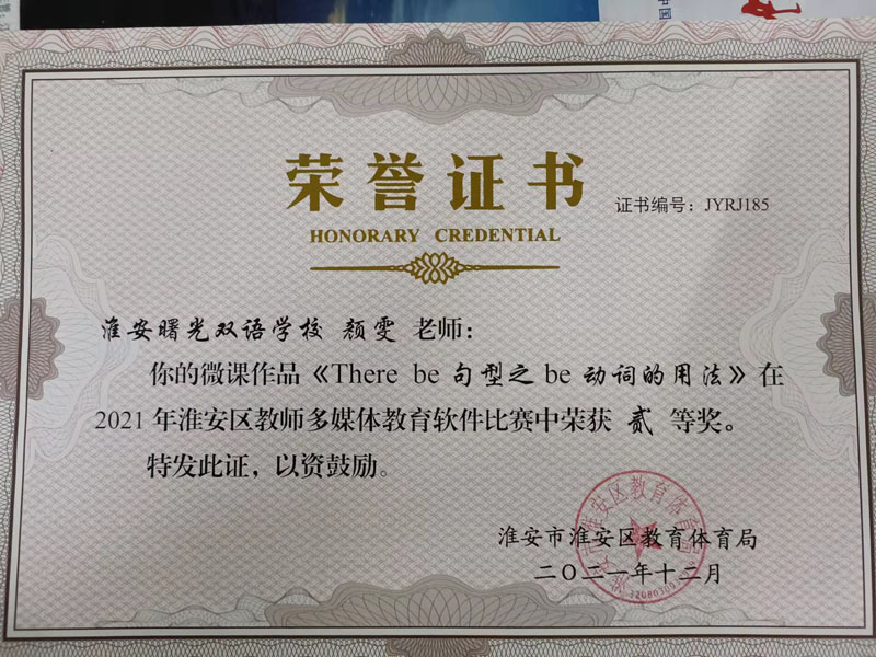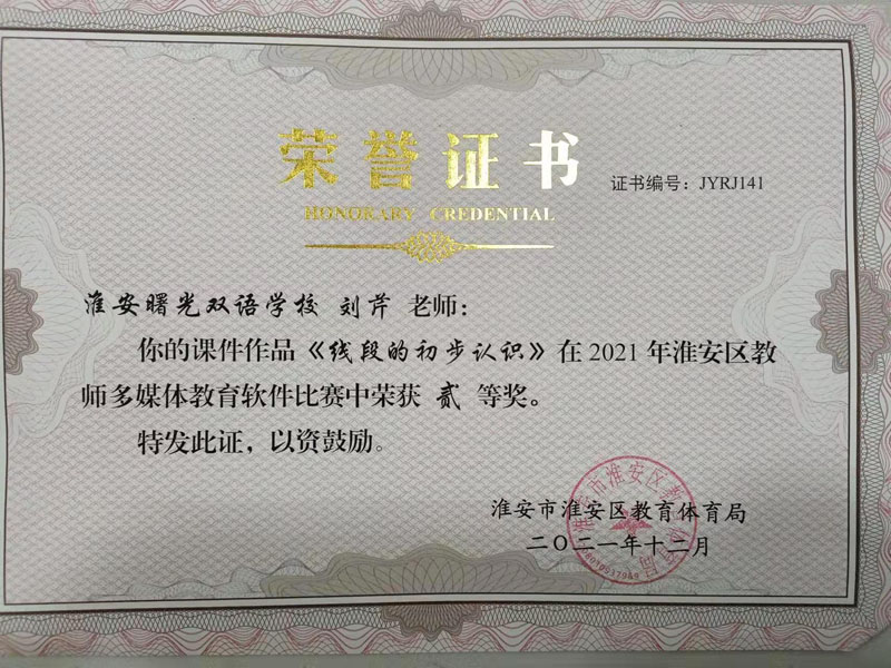 近日,淮安区各学科多媒体软件竞赛活动结果揭晓。淮安曙光双语学校小学部多名老师在竞赛中获奖。英语学科沙莎老师、鲍兆娟老师,体育学科刘宇老师荣获一等奖;语文学科潘珊珊老师、卢洪霞老师,数学学科刘芹老师,英语学科颜雯老师、孔祥燕老师荣获二等奖。