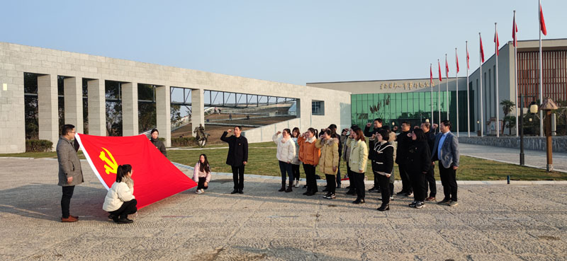 黄花塘新四军军部纪念馆位于淮安市盱眙县黄花塘镇黄花塘村,这里原来只是一个默默无闻的小村庄,但它在波澜壮阔的中国革命史上写下了辉煌的篇章。下午,全体党员抵达纪念馆,由支部书记吴迪兴领誓,面对鲜红的党旗庄严地重温了入党誓词。宣誓完毕后,全体党员参观了纪念馆内先烈们遗留下来的每一件器物、每一幅照片,认真聆听学习新四军的诞生背景、前期发展及重建军部历程。