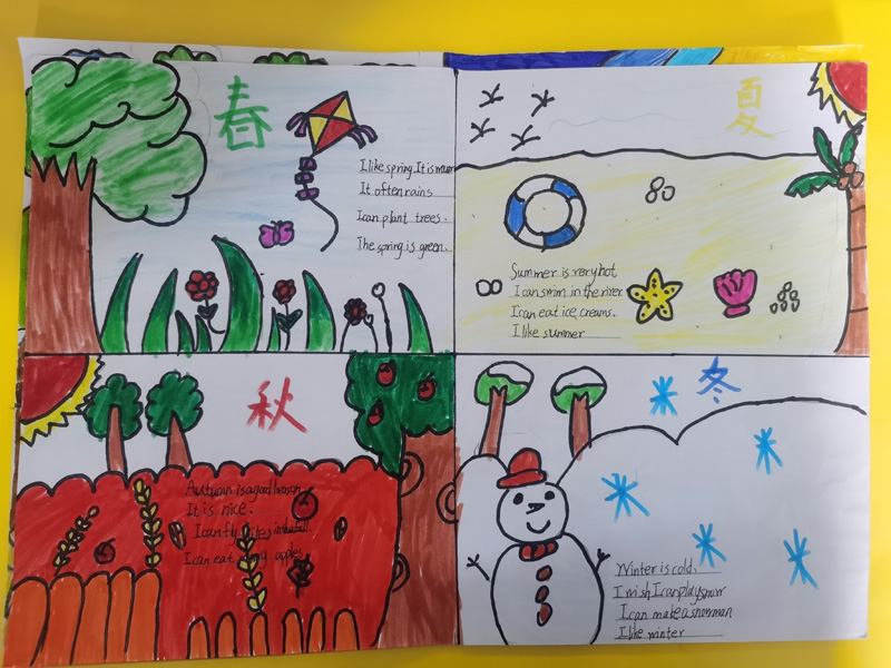 此次活动,进一步提高了孩子们的英语思维品质、想象力和创造力,再次点燃孩子们学习英语的热情。让我们将“新课标”精神落实到我们的教学中,进一步提高孩子们的英语素养。下面让我们一起来赏四季之美吧!(鲍兆娟)