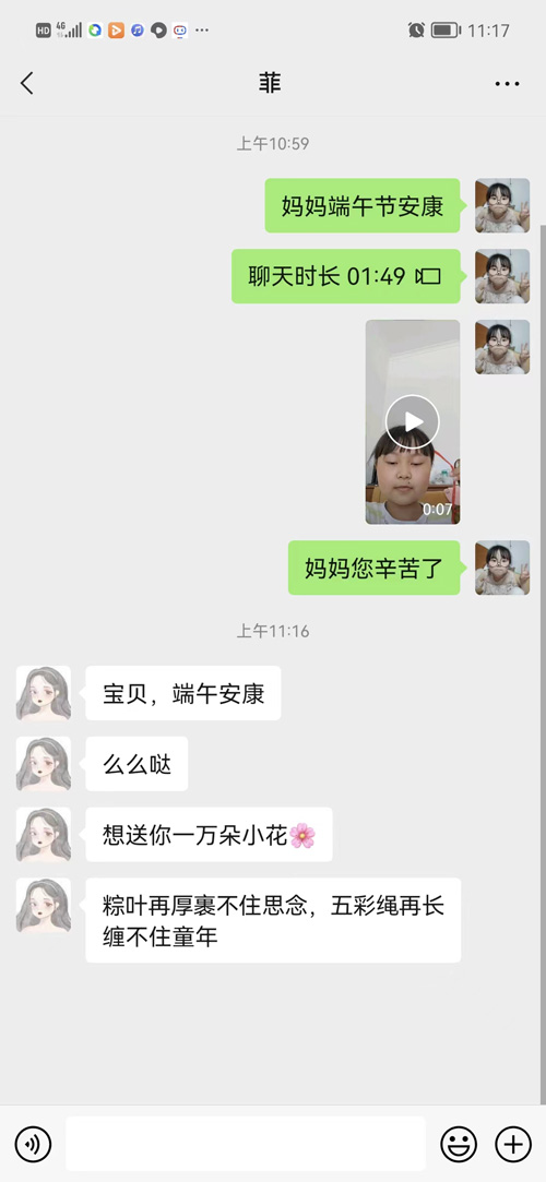 端午节到了,一句朴实的问候,很轻;一声平常的祝福,很真!孩子们、老师们、家长们把真情装进信息,把爱意放进祝福,把感恩包进粽子。孩子们用感恩的心感谢了家长的无私付出;用朴实的话语编织对父母的思念;用诚挚的心感恩老师的谆谆教诲;用快乐的心祝福他们的好朋友。老师们、家长们也把对孩子们的希望、期盼、祝福放进了字里行间。