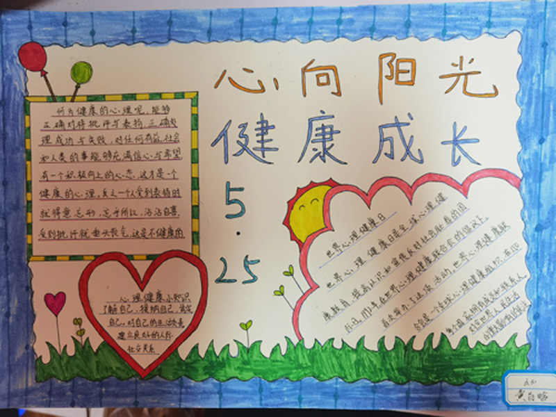 此次活动得到了校长室、德育处、各级部以及各班级的大力支持。活动期间,同学们积极参与,围绕“心向阳光 健康成长”主题,通过网络和书籍搜集资料,精心设计,通过书写、绘画,制成了一幅幅版面精美、内容丰富的作品。评委老师从内容、版面设计、创意等方面进行了评价,最终评出一(2)、二(1)、三(1)、三(2)等一等奖班级,四(1)班印宗艺、四(2)班范支萱等同学获得一等奖。
