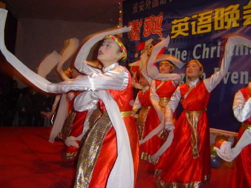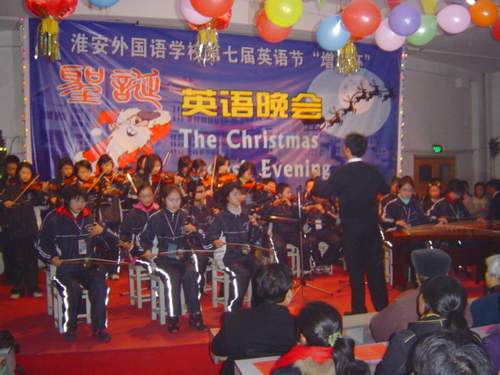 晚会在气势恢宏、场面壮观的器乐合奏《拔根芦柴花》中拉开了帷幕,清纯、自然、大方的主持人采取中英文混合的方式,让人耳目一新。那流畅的英语、激扬的中文令嘉宾们交口称赞。一时间歌如海,人如潮,彩带如织,花团锦簇,台上多姿多彩,台下掌声雷动。《完美世界》、《唱得响亮》、《baby one more time》、《PROVE IT》等现代歌舞靓出了少男少女们的活力与心声;英语课本剧《白雪公主》、《灰姑娘》、《丑小鸭》等经典曲目推陈出新,惟妙惟肖;富有民族特色的舞蹈《我家在日喀则》让人领略了少数民族的纯朴风情;形神兼备的群口快板《翔宇淮外展新姿》道出了淮外人七年的奋斗历程和辉煌的成绩;中华诗词经典诵读让人的性情得到了陶治,智慧得到了启迪;相声表演《童年的味道》、小提琴齐奏《新春乐》、戏曲联唱《夫妻双双把家还》才惊四座,台下观众无不夸奖有加;武术表演《中国功夫》一招一式,演绎了自强不息、奋力进取的中华魂;晚会在充满憧憬的大合唱《欢乐颂》旋律中结束,师生齐唱欢乐,互送祝福平安,将本次圣诞晚会推向最高潮。