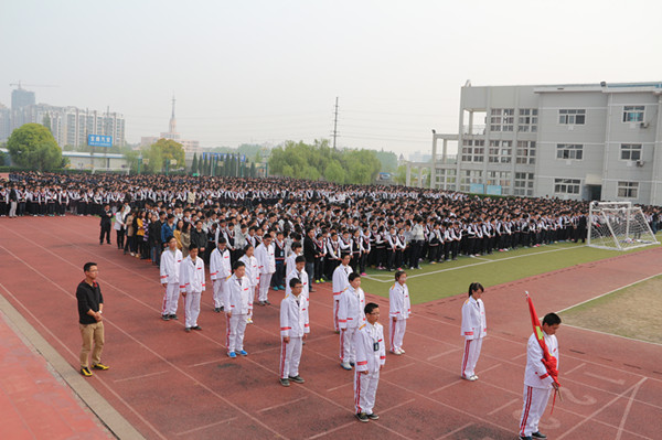 4月14日,春光明媚,风和日丽。淮外的操场热情四溢,“起来,不愿做奴隶的人们……”铿锵有力的国歌声在校园回响。