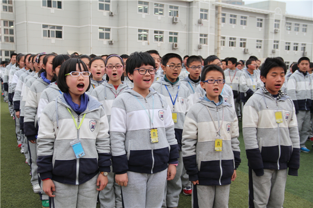 致辞之后,初一18个班级各自准备了一首歌颂春天的古诗。“碧玉妆成一树高”“草木知春不久归”“胜日寻芳泗水滨”“新年都未有芳华”…… 一班接一班,一首接一首地大声朗诵,淮外的操场一时间成了诗歌的海洋,一股浓浓的春潮在淮外的上空涌动。