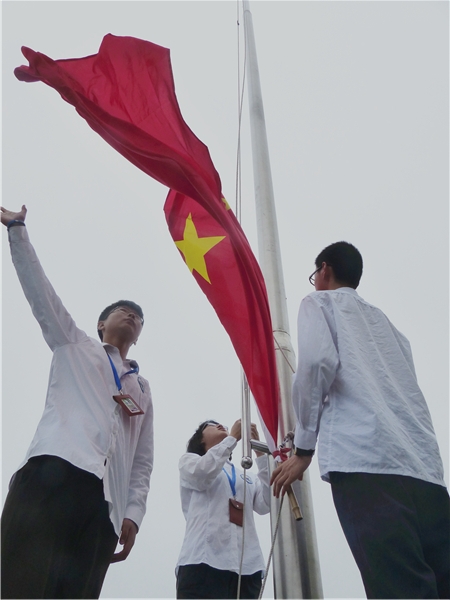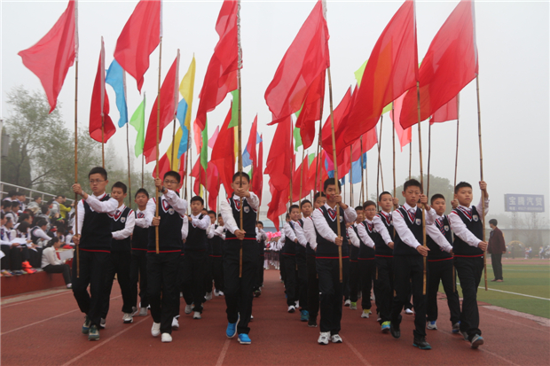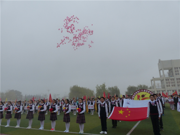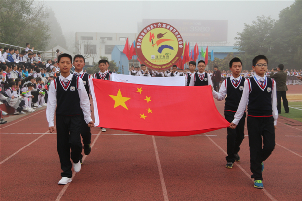一面鲜艳的五星红旗伴随着神圣的乐曲在校护旗手的护卫下缓缓进场。旗手们精神抖擞、意气风发,手擎旗帜,步伐坚定。象征团结、和平的运动会会徽吸引了所有人的眼球。穿着漂亮的校服,迈着整齐的步伐,挥舞着鲜花的鲜花方阵,彩旗方阵、气球方阵也紧随其后,形成了一道靓丽的风景线。