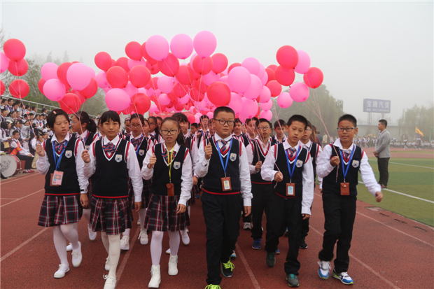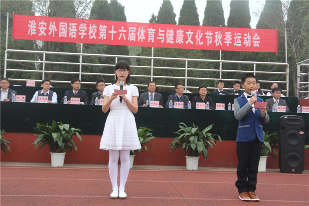 翔宇教育集团副总校长,淮安外国语学校朱建文校长用铿锵有力的声音宣布:“淮安外国语学校第十六届体育与健康文化节秋季运动会开幕!”顿时,锣鼓喧天,数百个彩色气球在蓝色苍穹的映衬下缓缓升空,仿佛插了翅膀翱翔在辽阔的天空。