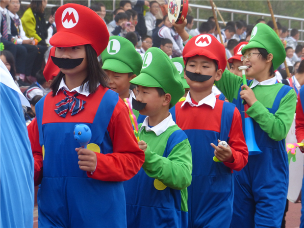 各个班级的出场也是亮点频出,让人耳目一新。体育节入场式成了同学们的“时装秀”,现代的、古代的,中国的、外国的,新潮的、混搭的,各具特色,别有风情;体育节入场式成了同学们才艺展示的舞台,吹葫芦丝,拉小提琴的,弹吉它的,各展其才;体育入场式成为“阳光体育运动”个性体育才情的展示场,轮滑、骑车、球类、跆拳道等,尽显其能;体育节入场式还激发了同学们创新的潜能,呼啦圈变幻的五环,人体数字造型,乐器和运动器具的整合,让人大开眼界……别样的入场,青春的狂欢,个性的张扬,创造的激情,成为淮外第16届体育节的独特符号。