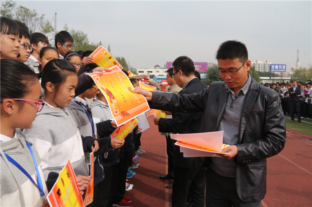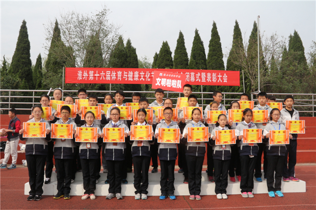 为了表彰运动员们的优异表现,激励全体同学为淮外创造美誉度的热情,吴主任郑重宣读了第16届体育节组委会特别颁布的嘉奖令。经过激烈角逐,初一(14)班、初二(17)班、初三(14)班分别获得本年级部团体第一名。初一(11)班等27个班级获得最佳创意入场式称号,初二(10)班等29个班级获得通讯报道先进班集体称号,初三(1)班等32个班级获得“体育道德风尚奖”,初一(3)班等31个文明啦啦队称号。