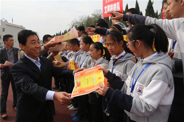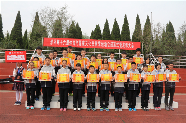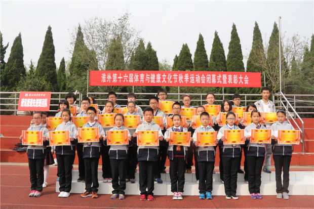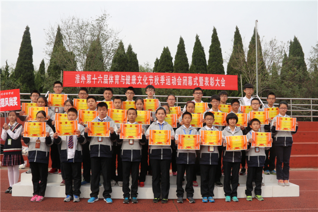 10月28日,淮安外国语学校在运动场隆重举行第16届体育与健康文化节秋季运动会颁奖典礼,对在活动中表现优异、贡献突出的个人、团队等进行表彰。活动由德育宣传处吴寿健主任主持,曹国柱副校长、殷建国副校长、张宁生副校长、陆怀珍副校长、赵树青副校长、张明根副校长等校领导出席会议,并为获奖学生和团队颁奖。