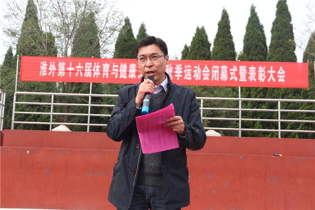 德育宣传处吴寿健主任总结了体育节开展以来各项活动所取得的优异成绩,对半个多月里辛勤付出的老师和同学表示由衷的感谢。对于刚结束的运动会,吴主任予以高度评价,他说,本届运动会本着“运动、健康、快乐、和谐、奋进”的理念去设计、开展活动,秉持“群众性、创新性、趣味性、快乐性”的原则,努力做到“以人为本,以生活为本,以快乐为本”,赢得了学生、家长以及社会热心人士的肯定和赞誉。运动会入场式各班独具特色,很有创意。运动会开幕式多个项目表演壮观而精彩:“七彩阳光”艺术表演操展现了淮外学子特有的精神风貌;武术表演方阵场面颇有创意,非常壮观;32步舞、绳操表演节奏明快,旋律优美;教师集体舞阳光灿烂,激情四射。一天半的运动会紧张有序,配合默契,衔接流畅,体现淮外人高效的协作精神和敬业品质。