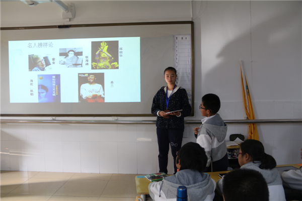 “今天的这个主题教育活动,很有意义。它让同学们明白,当辛劳成为一种习惯,当勤奋成为一种充实,无聊的嬉戏就将变成一种空虚。”级部领导张明根校长助理感慨地说道。