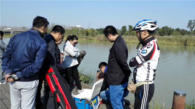 入西门,一股清新的空气扑面而来,猛吸一口,全身的每一个细胞都仿佛舒展开来,充满了活力,一路骑行的疲惫之感一扫而空。丛林掩映,曲径通幽,平湖出石上,残荷立水中,绿柳才黄,枫叶初红,也有不少叶子经不住秋意的侵袭飘然落下,或归于树间,或铺于路面,亦或是化作一扁舟,徜徉于碧波之上。骑行于此间,众人不由得放慢了速度,将美景尽数收于眼底,将心灵彻底融于自然……车队继续行进,地势逐渐平坦,视野也逐渐开阔起来,头顶的蓝天澄澈如洗,几片闲云亦如喜好美景的墨客,在空中悠哉游哉地写着诗行,偶尔几只白鸟也会上去凑凑热闹;岸边是茂密的芦苇丛,芦花开得正盛,清风拂过,它们成片成片地晃动着修长的身姿,似在欢迎我们的到来。每个人都找到自己放松的方式,张明根校长助理和徐捷厨师长等四人继续往前骑行赏景;杨学宽老师、戴洋洋老师和林以广老师三人则拿出早已准备好的渔具做起了钓客;葛樱等几位女老师则找了个傍湖向阳的坡地,坐着唠起了家常……