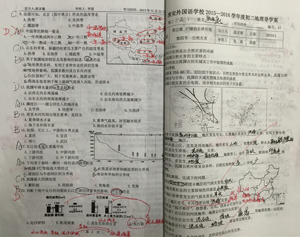 期末临近,为了帮助学生巩固良好的学习习惯,全面提升学生综合素质,淮安外国语学校初二级部按学号、分学科抽查了所有学生的全部作业纸和“心语录”,并由各学科的备课组长和级部领导进行了客观、公正、公平的评比。