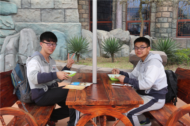在踏青的路上,每辆车上都开展了各式各样的活动,23号车里10班和15班的学生就在进行“成语接龙”的游戏,每个人都能放下手机平板,投入到游戏中。“聪明才智、智勇双全、全心全意、熠熠生辉、挥洒自如、如梦初醒……”10秒钟之内没有接上的人需要表演一个节目,玩累了“成语接龙”,学生们又开始唱起歌来,一首《青春修炼手册》,唱出了这些00后孩子的青春热情,唱出了她们的活力无限。这些丰富多彩的活动,既缓解了旅途的劳累,又增添了学生间的友谊,还更好的展示了淮外学子的精神风貌。