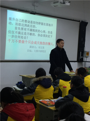 初三(8)班主任夏培权老师在给学生加油鼓劲