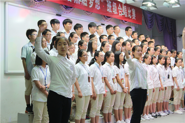为了激发学生珍惜青春,增强学生敢于承担时代使命的责任意识,培养学生的团队意识和合作精神,丰富校园文化生活,2017年6月20日晚,由初二级部承办的 “青春点燃梦想”合唱比赛在学校阶梯教室精彩上演。