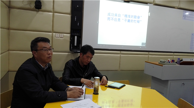 面对现状,如何突围?张知双主任以《寻找成功基因 聚焦质量提升》为题,从和谐师生、激情教育、精细管理、高效课堂、执行规范、担负责任等角度谈了自己的见闻感受。他认为“成功来自‘精准的勤奋’,而不应是‘平庸的忙碌’”。强调高效教学的重要性,他从早晚读课的高效组织,课堂教学密度、强度、难度的斟酌协调、学生积极性的保护与激发,晚自习的方法指导与状态监管等方面,结合具体教学案例,给出方法与建议。“课堂上要‘用教材教’,从创造性加工教材开始,到对教材科学地重组、合并、放大、缩小,添加、删除,让教学内容符合学生的发展”“课堂上教师的全部功绩在于‘引导’”……张主任的话让与会老师深深认同、称赞。“你教室里的任一个孩子,都是家长们的整个世界。”张主任表示,做有情、有爱、有效的教育,孩子会上心,家长会安心。