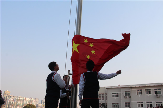 淮安外国语学校曹国柱副校长作主题发言。他勉励全体师生要铭记历史,发奋读书,振兴中华!呼吁我们努力在此刻,行动在此刻!化悲痛为力量,珍惜每分每秒,争做报国强国的栋梁,以优异的成绩和出色的本领抚慰祖国母亲曾经千疮百孔的心。曹校长告诉我们今天举行这场特殊的升国旗仪式,正是为了让同学们认清战争的残酷,珍惜今天生活的来之不易。南京大屠杀的过程虽说是悲惨的,但也反映了一个道理:民族振兴,国家强大才是抵御外来侵略最好的途径。而建设强国的责任就在我们肩上,实现中华民族伟大复兴的重任也在我们肩上。